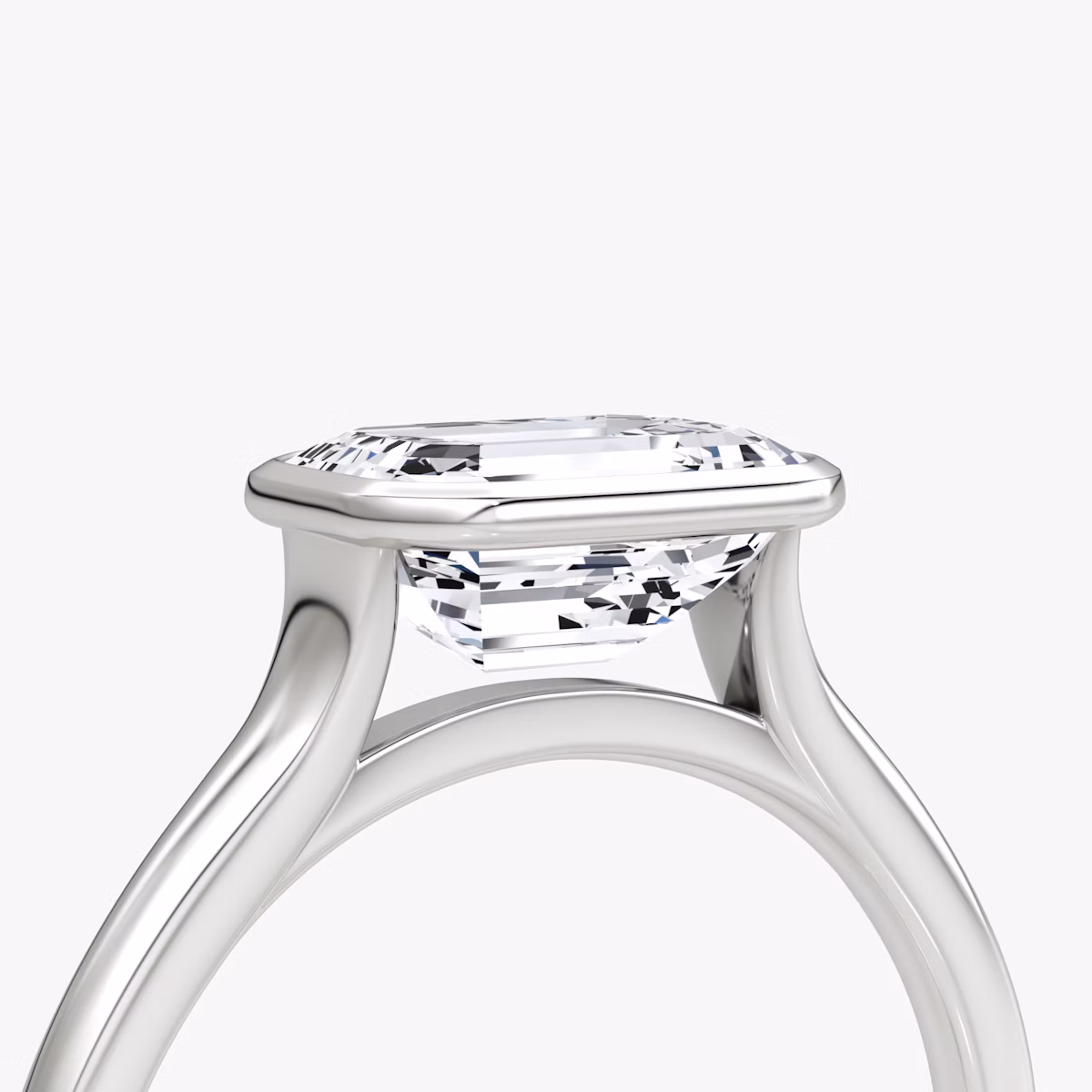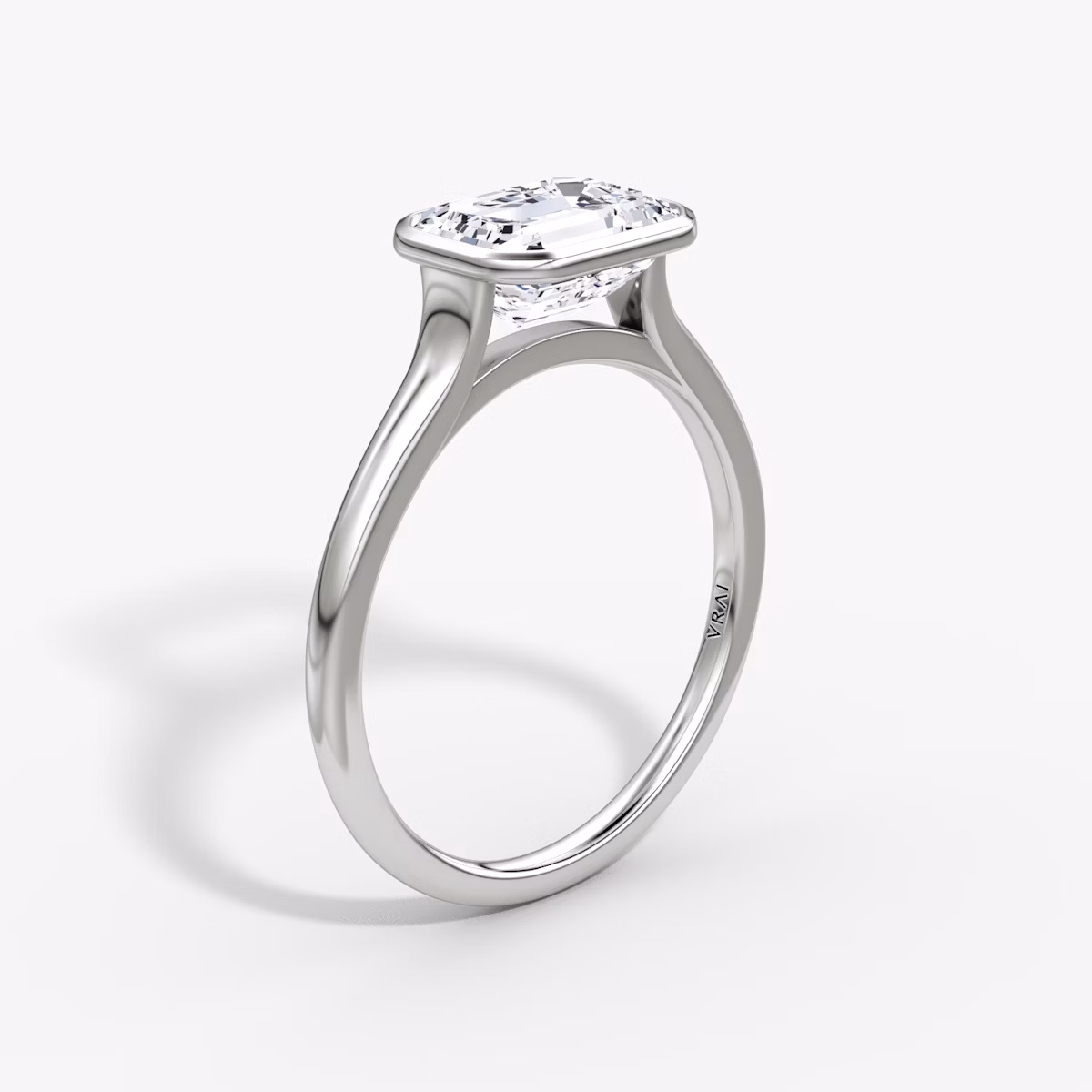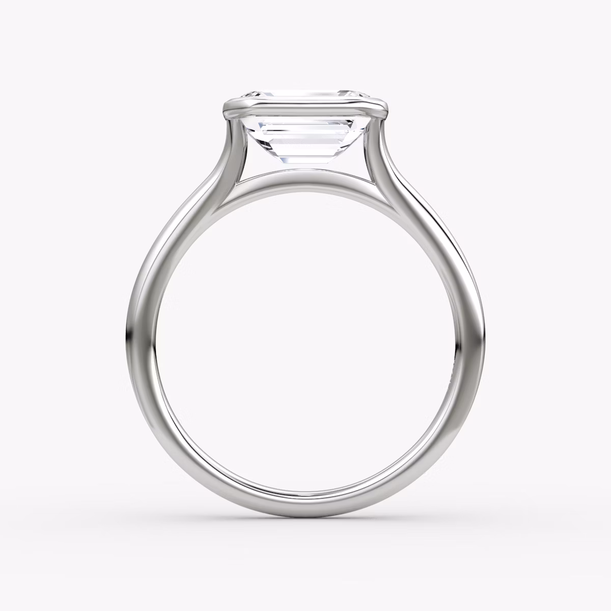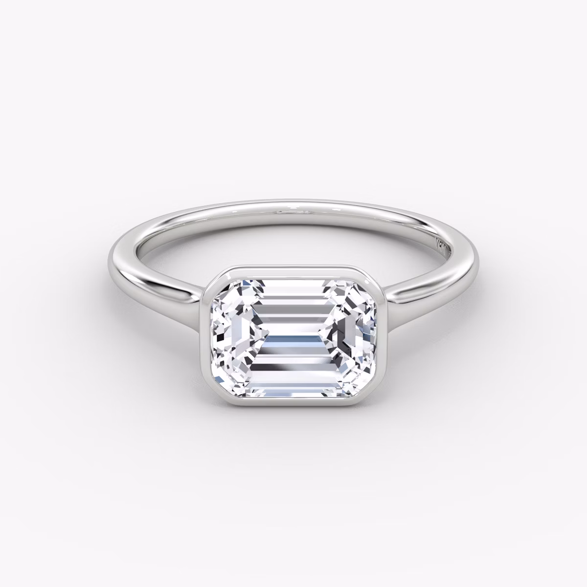 The Flat Edge Bezel solitaire in platinum with a emerald diamond