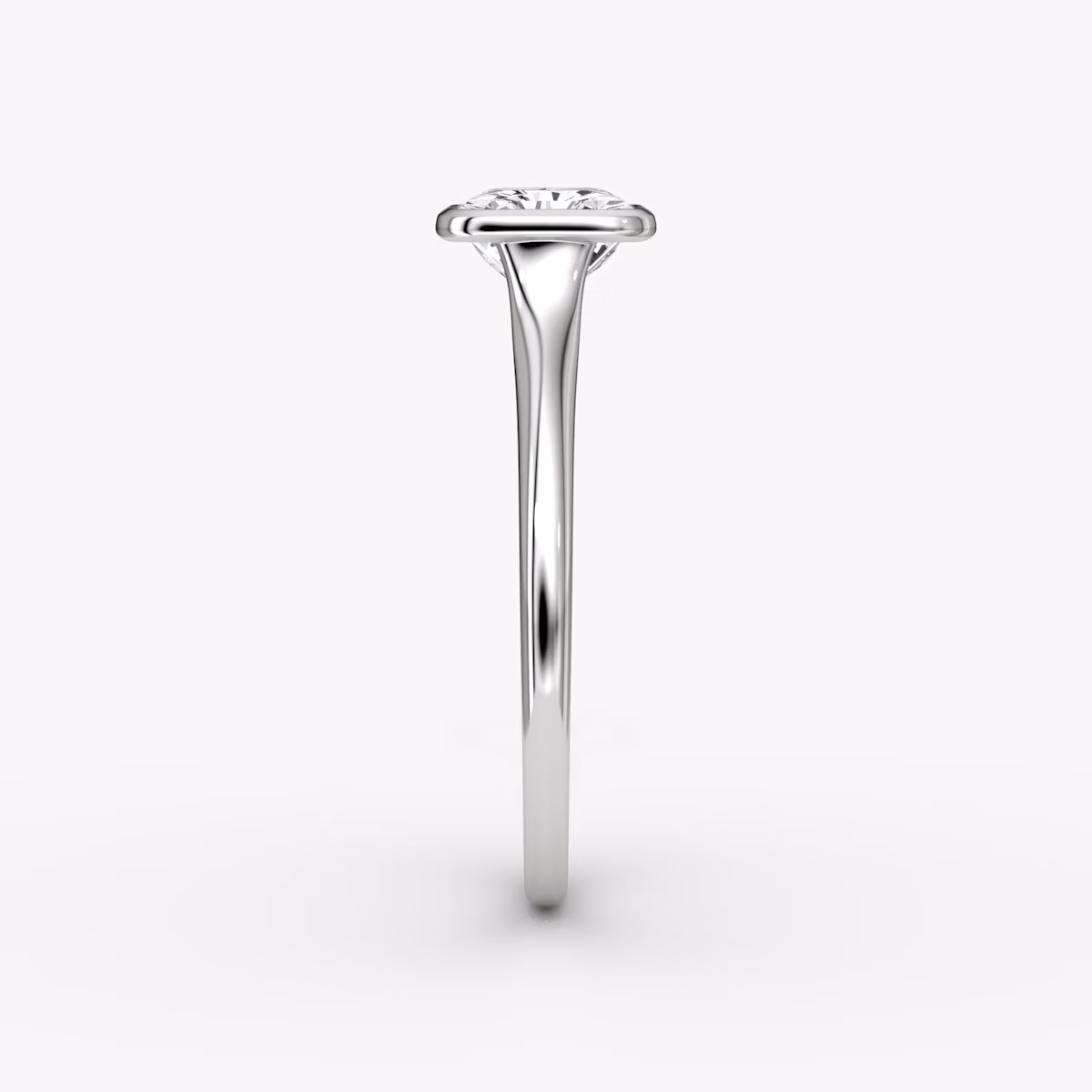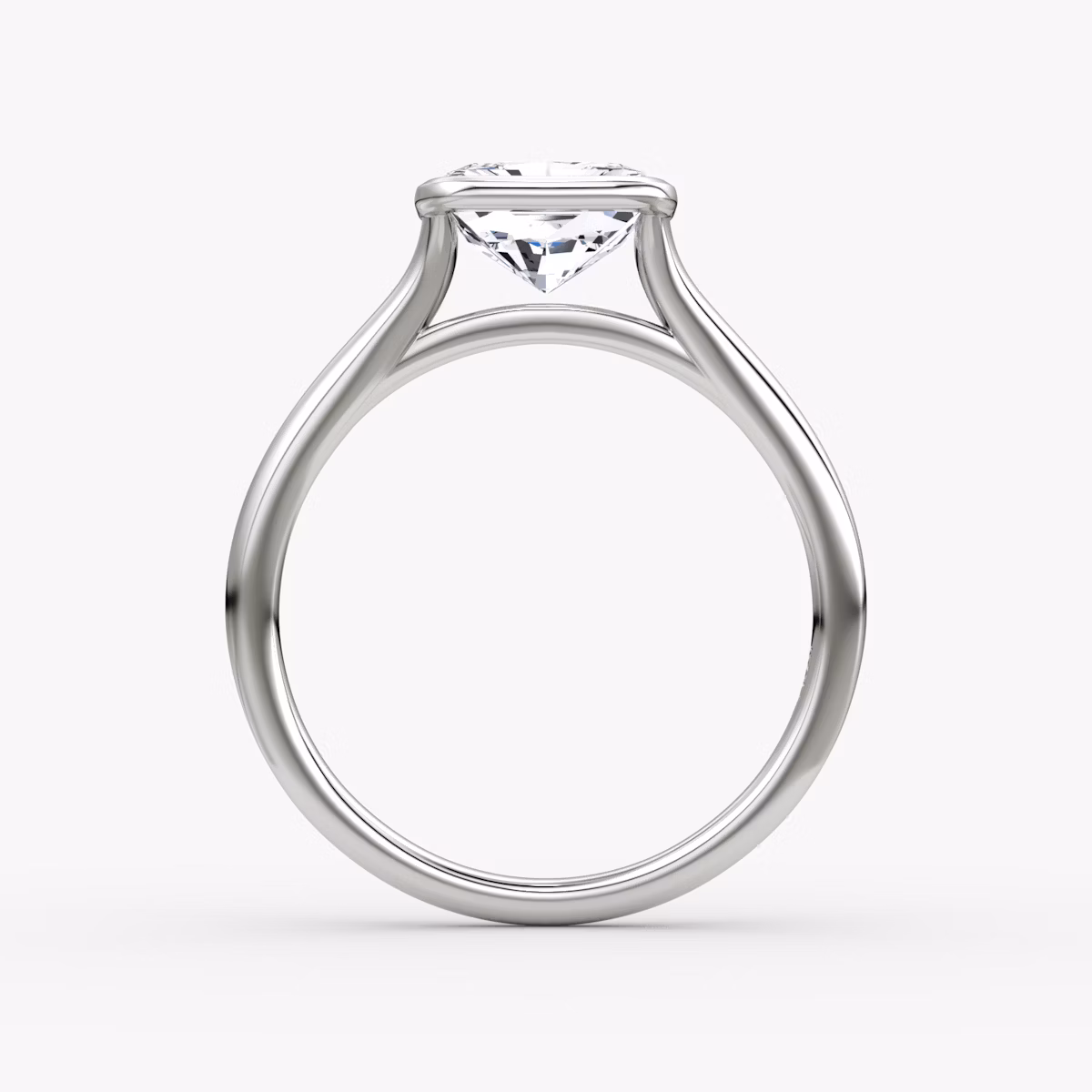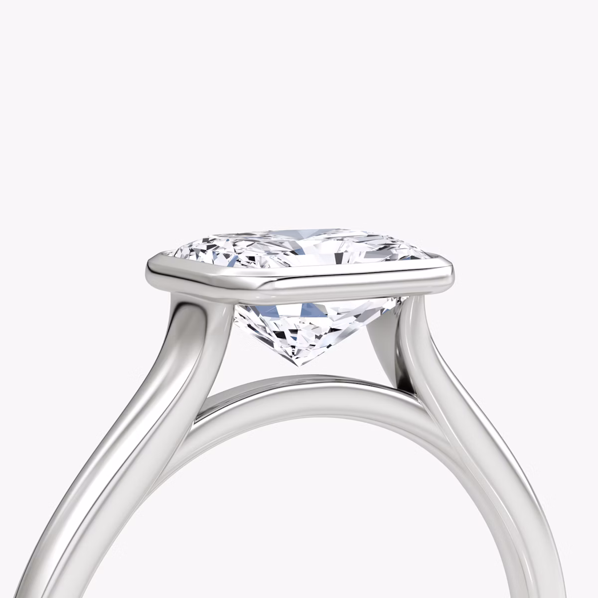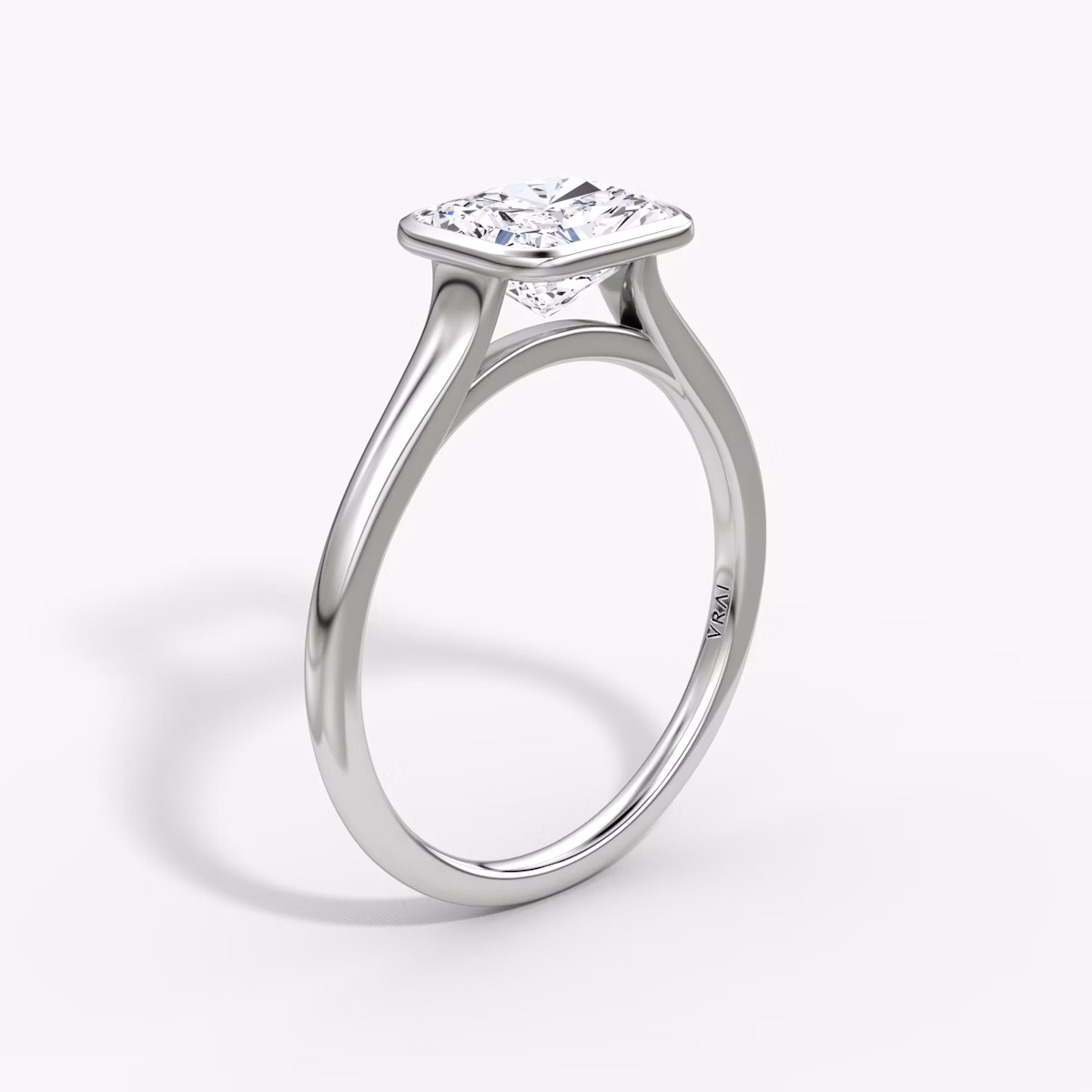 The Flat Edge Bezel solitaire in platinum with a radiant diamond
